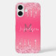 Funda iPhone 16 Giro Purpurina Goma rosa Monograma Añadir nombre