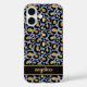Funda iPhone 16 Gold Foil On Blue Leopard Print Monogrammed