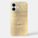 Funda iPhone 16 Gold Glitter & Monogram, Black Script Name