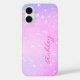 Funda iPhone 16 Gradiente púrpura y rosa, estrellas blancas y nomb