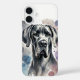 Muestra la majestuosa belleza del Gran Danés con este impresionante estuche para iPhone al estilo acuarela. Con un retrato detallado de este noble gigante, rodeado de salpicaduras abstractas en tonos grises, azules y violeta profundo, este funda desprende elegancia y fuerza. Un accesorio perfecto para los amantes del Gran Dane, los aficionados al mascota y los que aprecian los diseños atrevidos y artísticos.