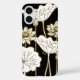 Funda iPhone 16 Grandes flores blancas en negro con el tríbol de K