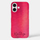 Estuche de teléfono celular con shimmer metálico oscuro y rojo personalizado con tu nombre o monograma en tu elección de estilos de fuente y colores (se muestra con un tipo de letra manuscrita moderna en rosa oscuro). OPCIONES DE TELÉFONO: El ejemplo se muestra en el modelo de iPhone 16 y en el estilo de funda Barely There: en la página de pedidos se muestran otros modelos de teléfono y estilo funda. ASISTENCIA: Para obtener ayuda con la modificación o personalización del diseño, el cambio de color, el redimensionamiento, la transferencia del diseño a otro producto o si desea coordinar elementos, póngase en contacto con el diseñador ANTES DE PEDIDOS a través de la pestaña del MENSAJE de charla de Zazzle, o envíe un correo electrónico a makeitaboutyoustore@gmail.com.