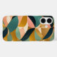 Las formas abstractas de hojas en verde azulado, dorado y negro crean un diseño moderno y lujoso en este estuche para iPhone.