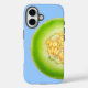 Fotografía de un melón de miel cortado en mitad mostrando semillas, fruta y corteza.