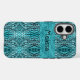 Funda iPhone 16 impresión animal de moda en azul - plumas y purpur