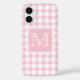 Funda iPhone 16 Inicial | Pastel Pink Girly Gingham Plaid Checker