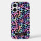 Customize this colorful iridescent rainbow leopard print iPhone 16 case with your your name in a trendy modern CAP font in peachy pink on black. It's so chic!