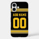 Funda iPhone 16 Jersey de fútbol - Nombre dorado negro y número de