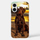 Funda iPhone 16 Labrador de chocolate al atardecer