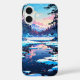 Caja minimalista con teléfono de anime con un tranquilo lago helado rodeado de árboles nevados y un suave cielo pastel. Perfecto para paisajes de invierno serenos.