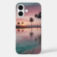 Laguna tranquila con agua turquesa y palmeras bajo un suave cielo de sol. Un diseño de verano apacible para los estuches telefónicos.