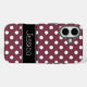 En este estuche para iPhone se presenta un diseño de puntos de polka negro y borgoña. ¡Fácilmente personalizable con tu nombre!