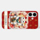 Funda iPhone 16 Lucky Cat With Red Flowers Monogrammed