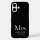 Este elegante y minimalista estuche de teléfono dice "Mrs." con un lujoso tipo de letra blanco, moderno y de alta moda en negro oscuro, y también tiene un lugar para su apellido y fecha de boda.