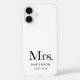 Este elegante y minimalista estuche de teléfono dice "Mrs." en un moderno y lujoso tipo de letra en blanco y negro, y también tiene un lugar para su apellido y fecha de boda.