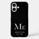 Este elegante y minimalista estuche de teléfono dice "Sr." con un tipo de letra blanco, moderno y de alta moda en negro, y también tiene un lugar para su apellido y fecha boda.
