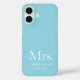 Este elegante y minimalista estuche de teléfono dice "Mrs." con un lujoso tipo de letra blanco, moderno y de alta moda sobre azul de huevo robin, y también tiene un lugar para su apellido y fecha boda.