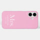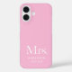 Este elegante y minimalista estuche de teléfono dice "Mrs." con un lujoso tipo de letra blanco, moderno y de alta moda en rosa, y también tiene un lugar para su apellido y fecha de boda.
