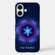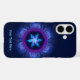 Estrellas fractales rosadas y azules de David entrelazadas en un fondo oscuro. Personalizar agregando su propio texto.