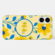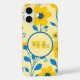 Funda iPhone 16 Mantequilla monograma amarillo y azul floral