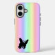 Funda iPhone 16 Mariposa negra en el arcoiris pastel