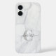 Funda iPhone 16 Mármol blanco y gris monogramado personalizado