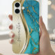 Funda iPhone 16 Mármol Turquesa Piedra Dorada con Nombre Escrito a