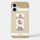 Personalizado Mascota 3 Collage de fotos y nombre Funda para iPhone 16. Un caso de teléfono fotográfico personalizado para el dueño de un perro. Diseño moderno con un fondo beige y un purpurina de oro falso. Personalice el estuche telefónico con 3 de sus fotos favoritas de mascotas y un nombre en un guión moderno. Un regalo personalizado perfecto para un dueño de perro y un amante de los animales.
