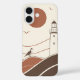 Minimalist vector illustration of a lighthouse with coastal scenery, bird, and sun using warm earth tone colors. Clean line art and balanced composition designed for a modern and aesthetic iPhone 16 phone case.