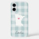 Muestra algo de orgullo del estado de casa con este bonito estuche de teléfono de estilo rústico que presenta un mapa de silueta blanca del estado de Minnesota con un corazón rosa en el interior, sobre un fondo de manta de búfalo dibujado a mano en verde menta pastel y blanco. Agregue un nombre, un monograma o una frase en la parte inferior de la letra manuscrita. Incluso puede cambiar la posición del corazón a su ciudad natal abriendo la herramienta de diseño y arrastrando la forma del corazón a su lugar favorito.