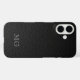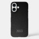 Funda iPhone 16 Modern Black Faux Leather White Monogram Initials