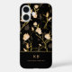 Funda iPhone 16 Modern Elegant Black Gold Floral Pattern