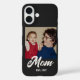 This groovy black phone case features a 70s style script that says 'Mom', which you can swap out for a different term or name, followed by the established line, where you can add the year your loved one became a mother. All colors and elements can be edited in the Zazzle design tool. Replace the photo for one of you and your children together. ••• For more Mother's Day gifts, visit my store Zazzle.com/The_Pink_Pixie ••• For custom orders, message me on Zazzle