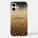 Funda iPhone 16 Monogram Black Gold Glitter Leopard Print
