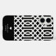 Elegante estuche de teléfono personalizado en colores blanco y negro. Este diseño presenta un patrón de enrejado marroquí. Personalízalo con tu nombre monograma u otro texto personalizado con un lindo símbolo cardíaco. Utilice las herramientas de diseño para elegir cualquier color de fondo, edite los tipos de letra y colores del texto y cargue sus propias fotos para crear una única cubierta de un dispositivo de tipo!