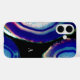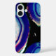 El elegante y llamativo estuche de teléfono cuenta con una vibrante imagen de rodajas agate geodésicas en brillantes tonos índigo, azul y violeta sobre un fondo negro. Personalice con sus iniciales o monograma insertados en el diseño con letras blancas clásicas.