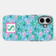 Funda iPhone 16 Monograma de Elefante Preppy Tropical