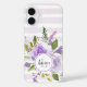 Funda iPhone 16 Monograma de Floral y Tiras Lilac