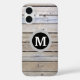 Funda iPhone 16 Monograma de fondo de madera de playa