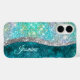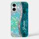 moda de bonito y elegante estuche para iPhone con monograma de purpurina turquesa iridiscente. Hermosa, moderna y fresca cubierta para el martiritero de moda y amante del arte. Este diseño presenta un patrón iridiscente, falso purpurina en tonos oceánicos de turquesa, rosa y plata. El funda brilla con una capa holográfica que captura un estilo de niñera inspirado en las sirenas, perfecto para los amantes del brillo mágico. Personalízalo como un regalo para día de San Valentín, Navidades, cumpleaños o como un regalo en general, es una gran idea de regalo para cualquier chica, mujer o hasta niños que aman modernos diseños mágicos y brillantes. NOTA: Se trata de gráficos impresos planos, sin purpurinas, joyas ni piezas elevadas.