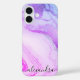 Monograma de mármol púrpura Nombre personalizado Funda único para iPhone 16