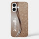 Funda iPhone 16 Monograma de Mocha Mousse Faux purpurina