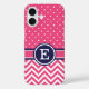 Funda iPhone 16 Monograma de puntos de Chevron rosados y de la mar