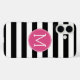 Funda iPhone 16 Monograma de rayas blancas negras con rosado calie