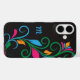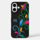Personalice este elegante funda de marca Funda-Mate para su teléfono con su propio monograma. Simplemente edite en el sencillo editor de texto Zazzle. Creado en un patrón de borde de hoja giratoria en negrita, ON BACK con salpicaduras de color brillantes. Para una variedad de modelos. Seleccione el suyo en el menú desplegable.