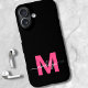 Estuche de teléfono monograma inicial Magenta Pink Hot Black Script personalizado. Añade un toque atrevido y vibrante a tu teléfono con esta moda y estuche de teléfono personalizado. Con un elegante fondo negro, una audaz inicial magenta rosa caliente y un florido nombre de escritura blanca, este diseño ofrece un aspecto divertido y femenino con un aire moderno. Perfecto para hermanas de hermandad, estudiantes o cualquier persona que ame un estilo lúdico pero elegante, este estuche de teléfono hace un regalo reflexivo para cumpleaños, vacaciones o cualquier ocasión especial. Práctico, personalizado y lleno de personalidad, este estuche de teléfono es la manera perfecta de elevar tus accesorios cotidianos.