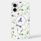 Funda iPhone 16 Monograma del patrón de flor silvestre acuarela