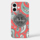 Funda iPhone 16 Monograma del Personalizado Coral Bohemian Paisley
