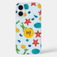 Estuche de iphone colorido personalizado océano playa con pez estrella, conchas y guijarros, hierba marina para el verano presenta monograma personalizado. El diseño de las maletas de iphone, único y de estilo bonito, presenta un adorable patrón tropical inspirado en la belleza del océano, adornado con delicadas conchas de mar, estrellas de mar, algas, gotitas de agua y piedras. Los tonos claros del azul, el rojo, el amarillo y el verde imitan los colores del mar tropical y evocan las vibraciones veraniegas. Que la belleza de la playa de la costa te eleve todos los días. Personalice este estuche iphone con su original.